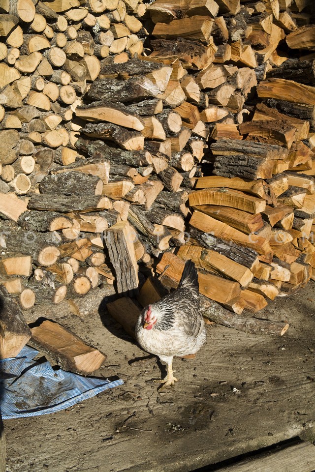 Chopped wood and chicken