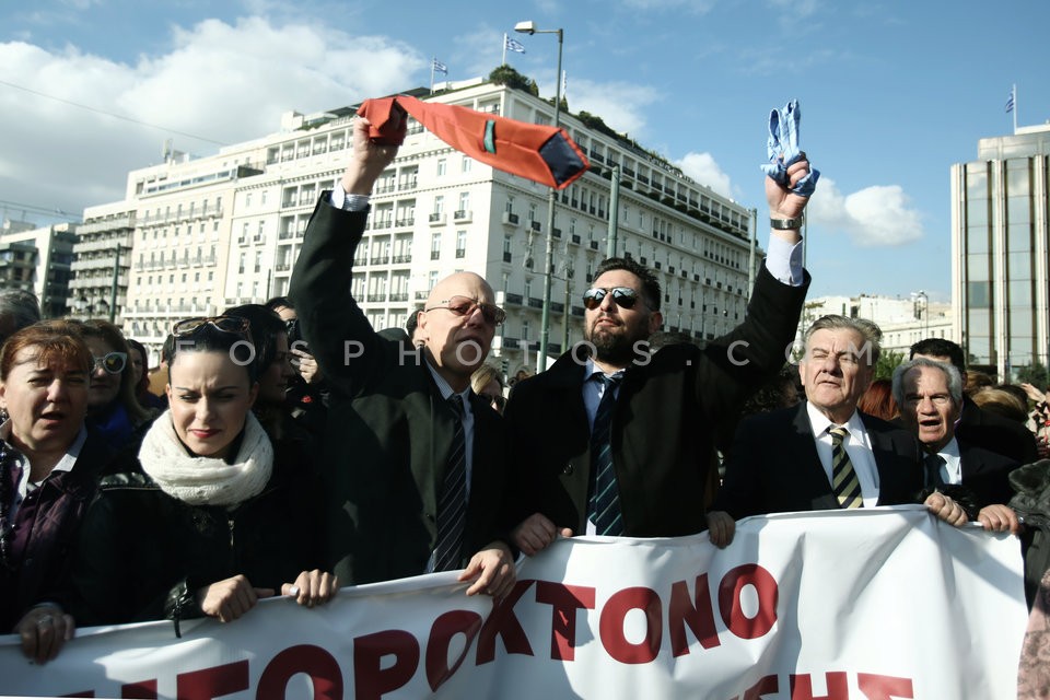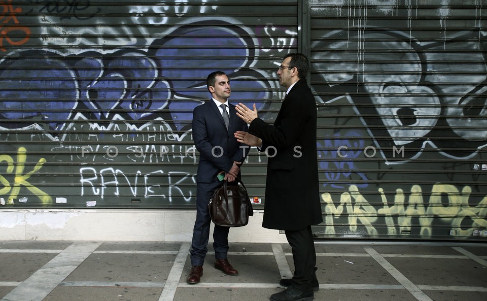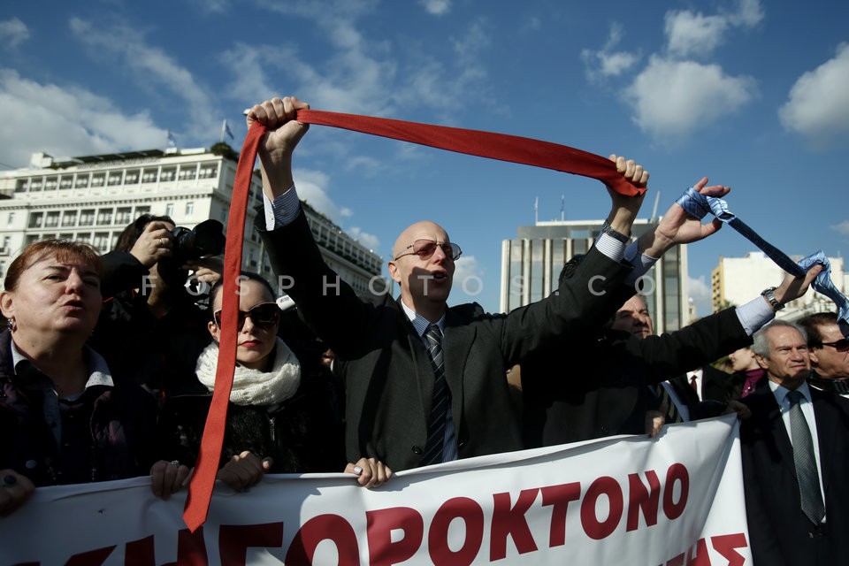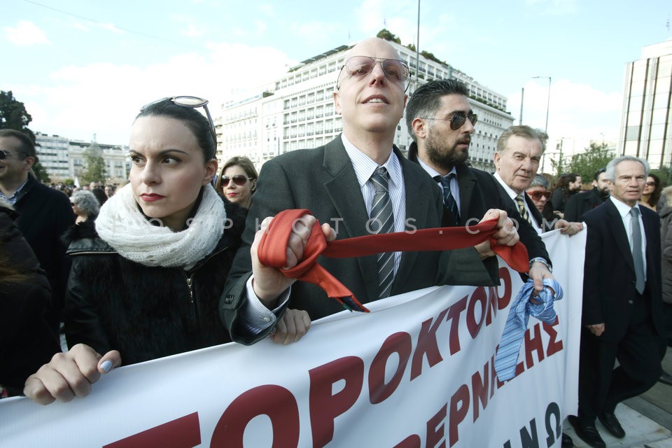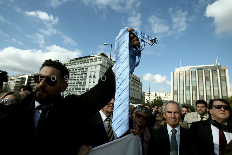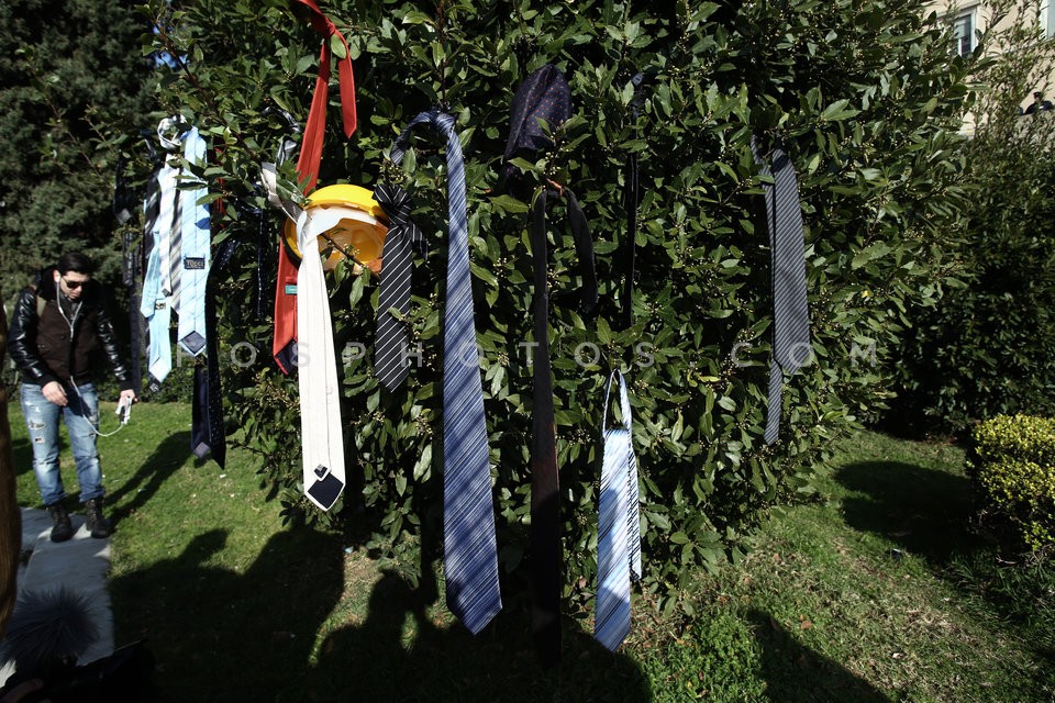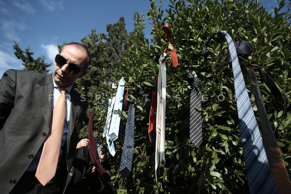 Lawyers hang their ties in a bush in fro…