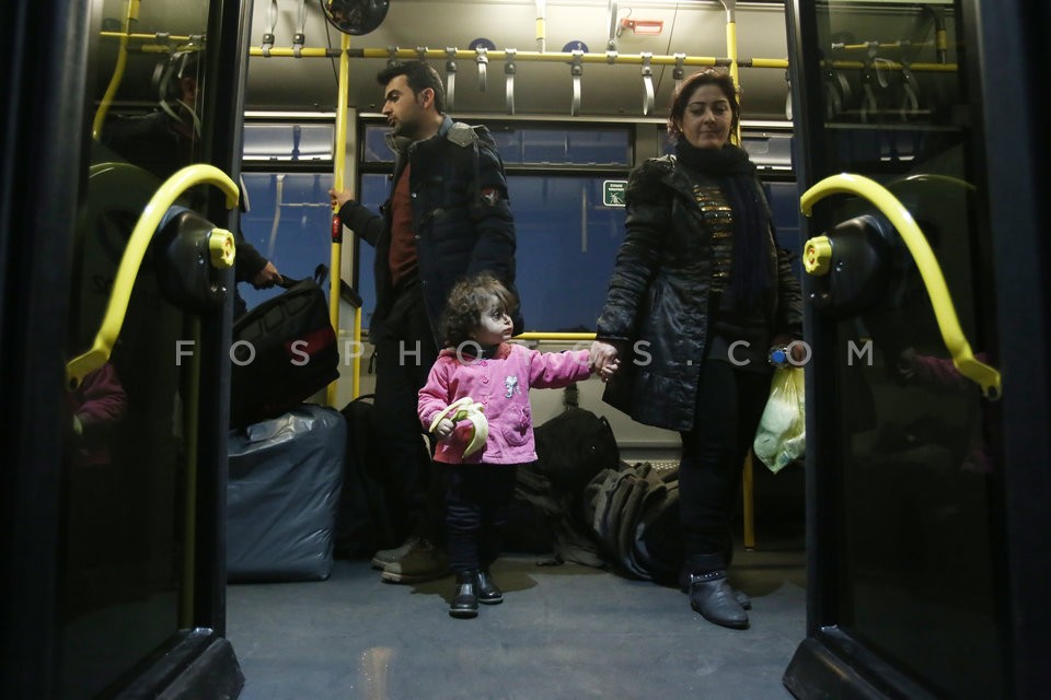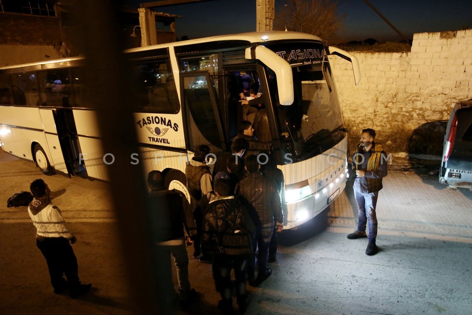 Migrants board to private buses that wil…