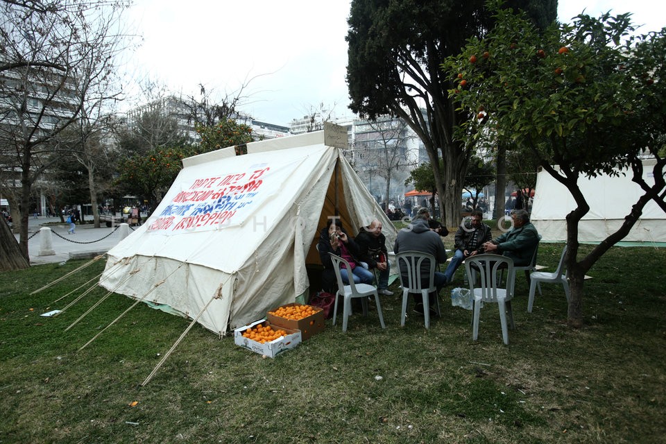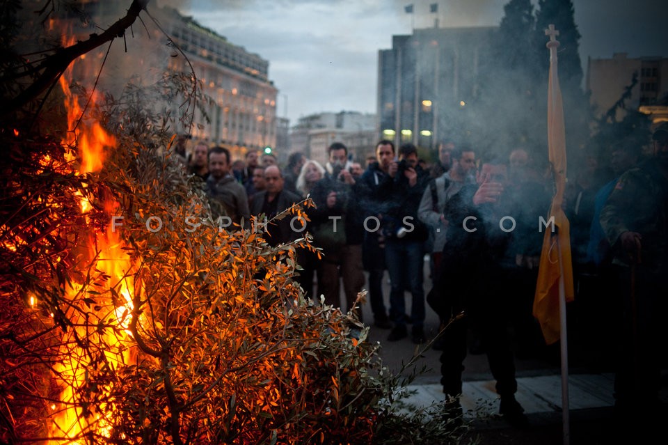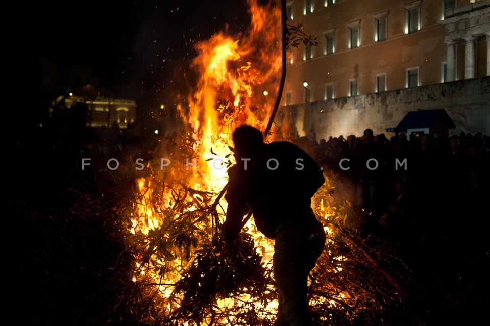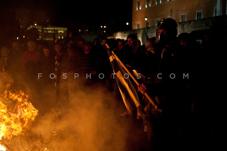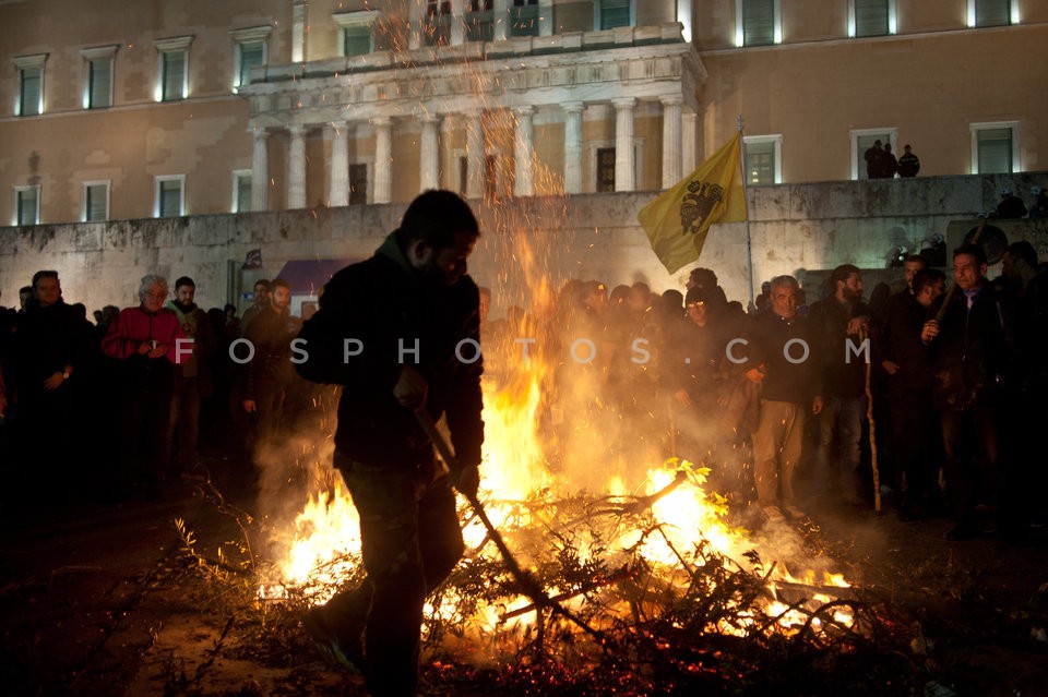 Farmers light a fire outside the Parliam…