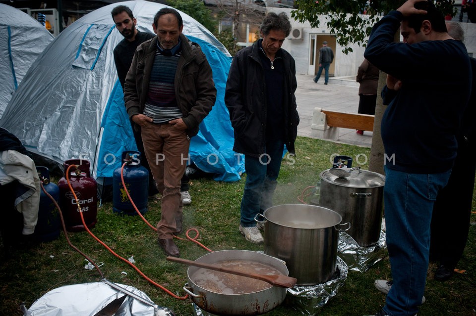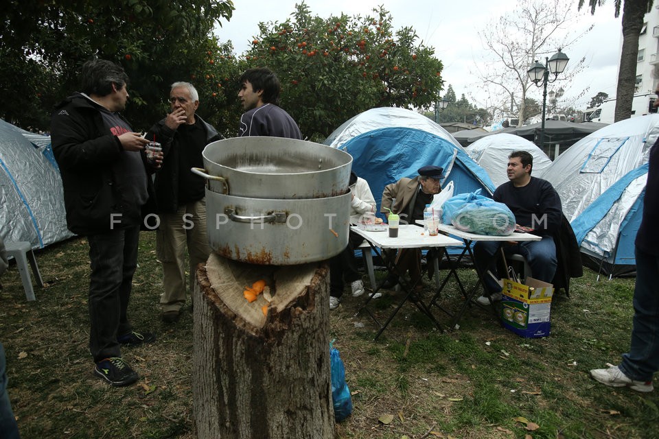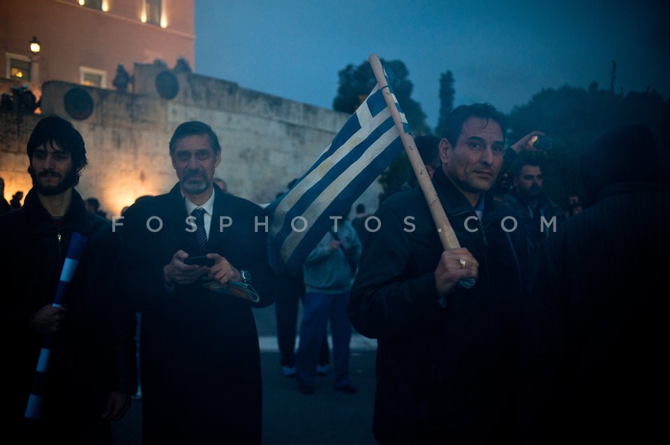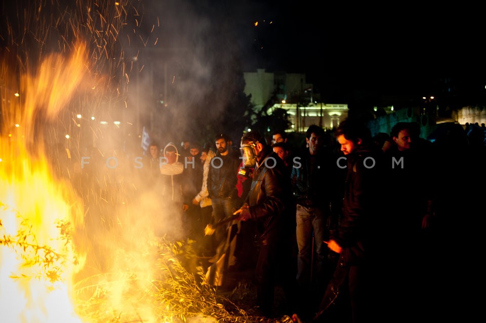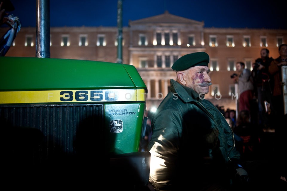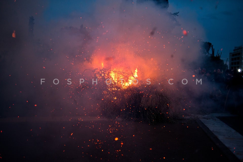Farmers light a fire outside the Parliam…