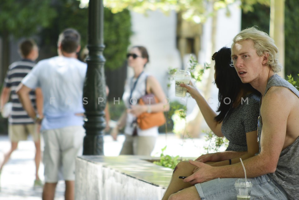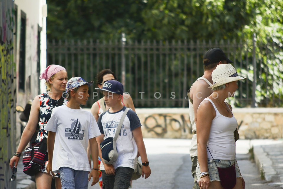 Tourists walking in the streets of the c…