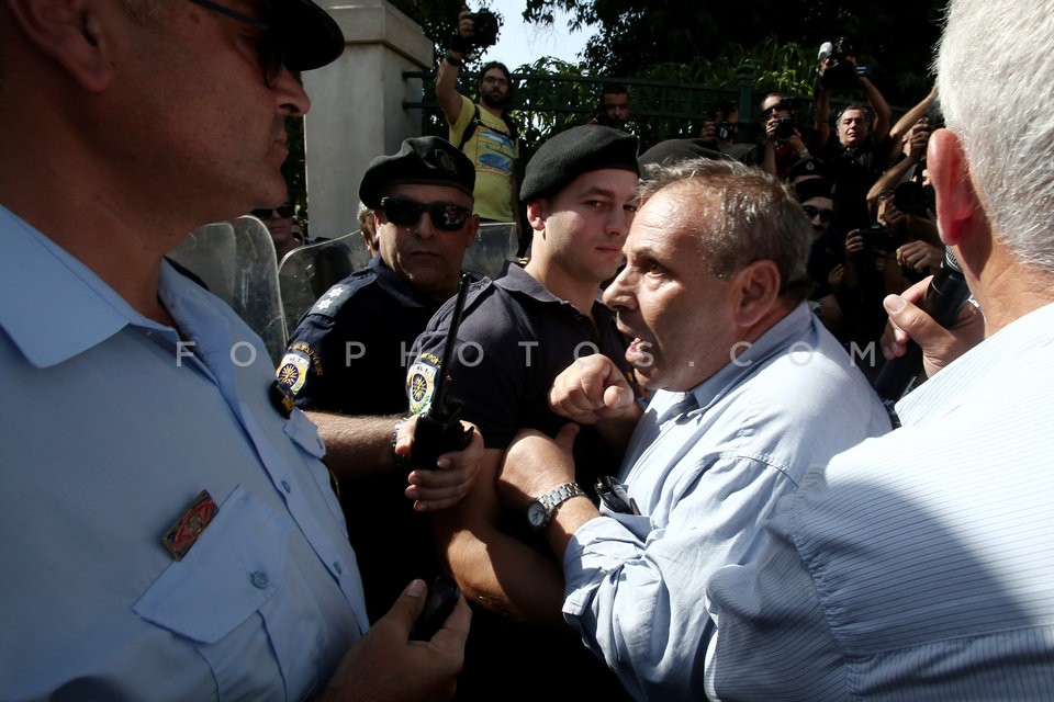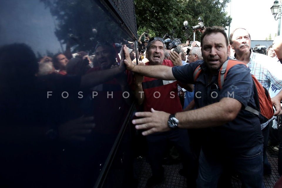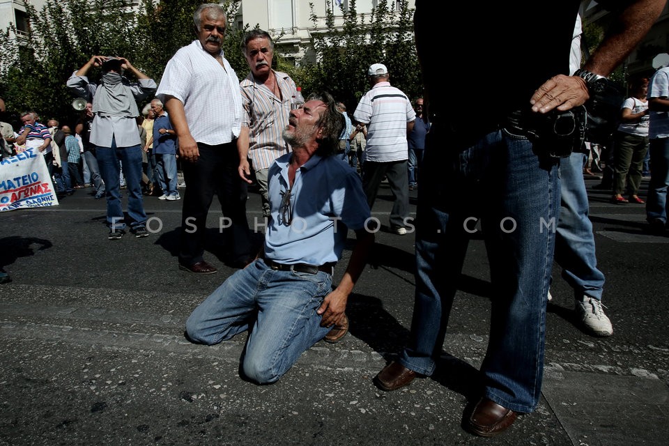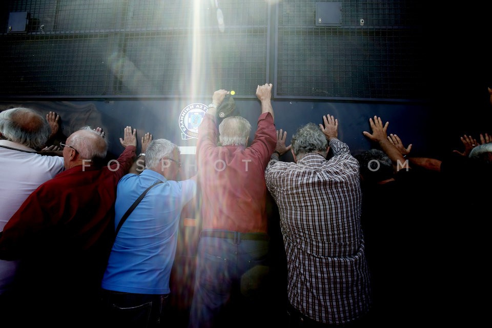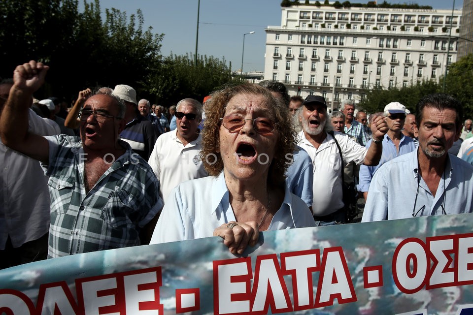 Pensioners shout slogans against the gov…