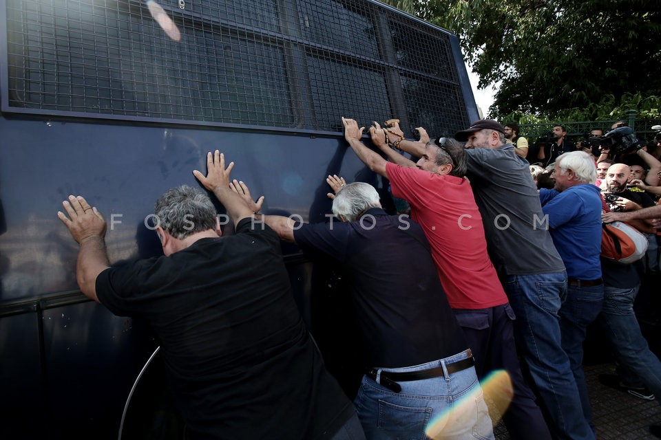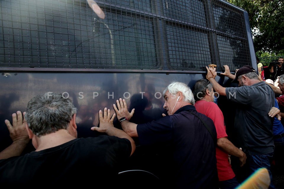 Pensioners try to overturn a police bus …
