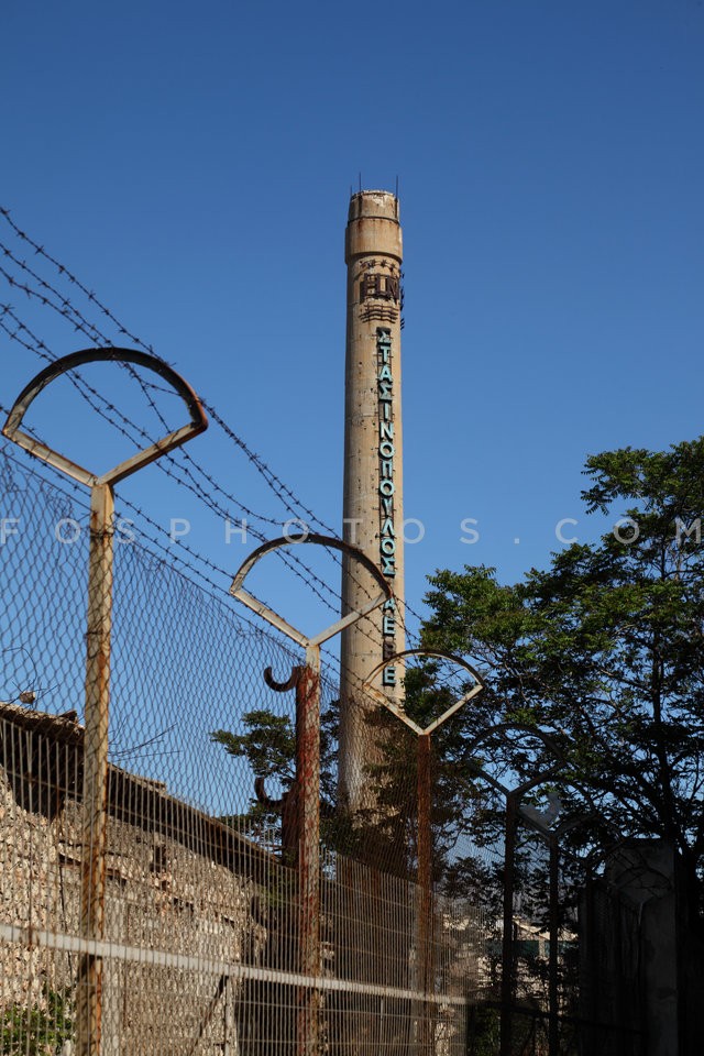 Smokestack of abandoned factory on Pireo…
