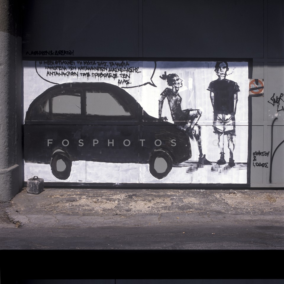 Graffiti on metal door, Votanikos, Athen…