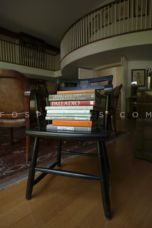Books on a chair, Athens, Greece