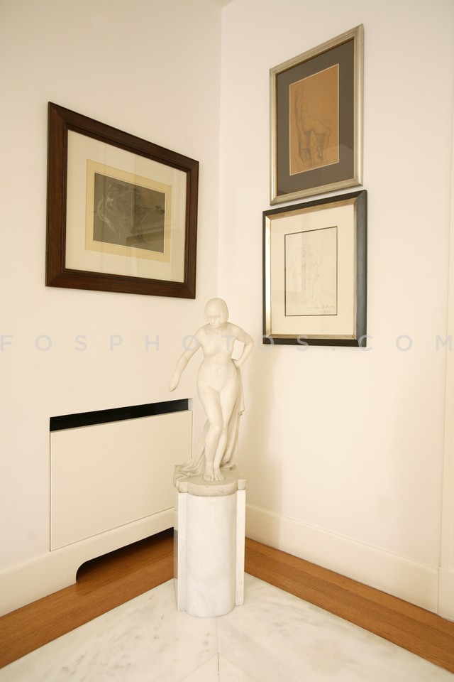 House corner with sculpture, Athens, Greece