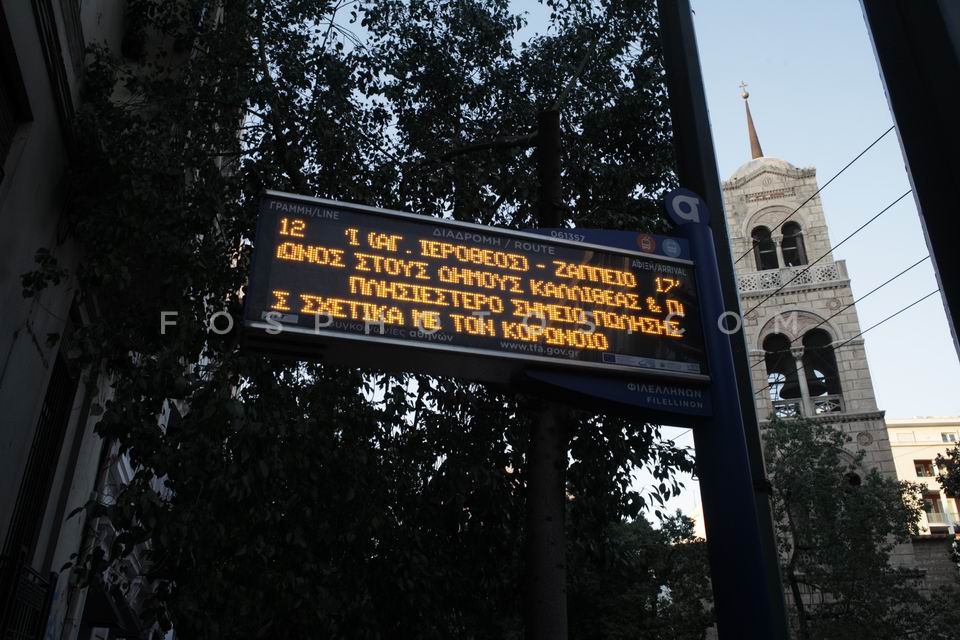 Bus station. Athens deserted during the …