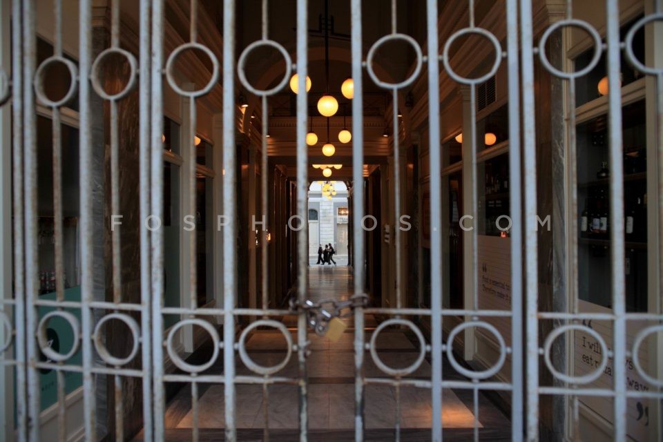 Closed portico at the city's center. Ath…