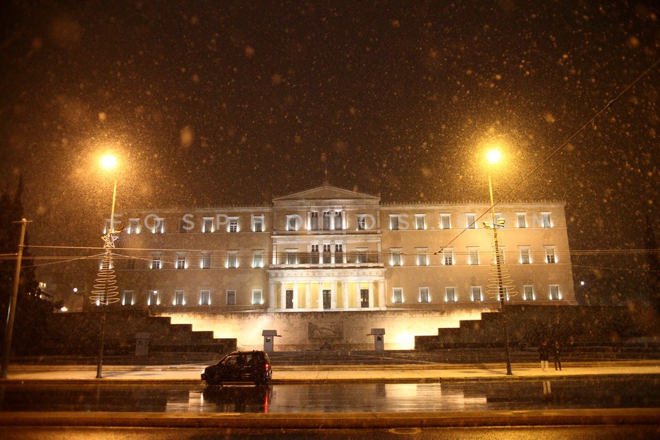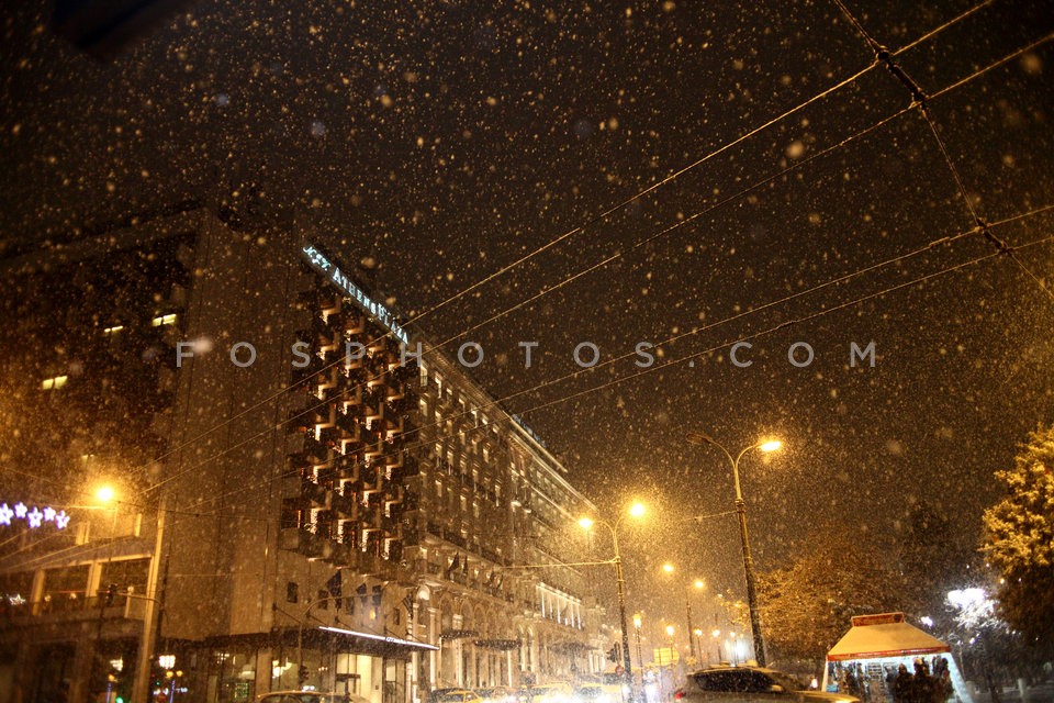 Heavy snowfall in central Athens on Mond…