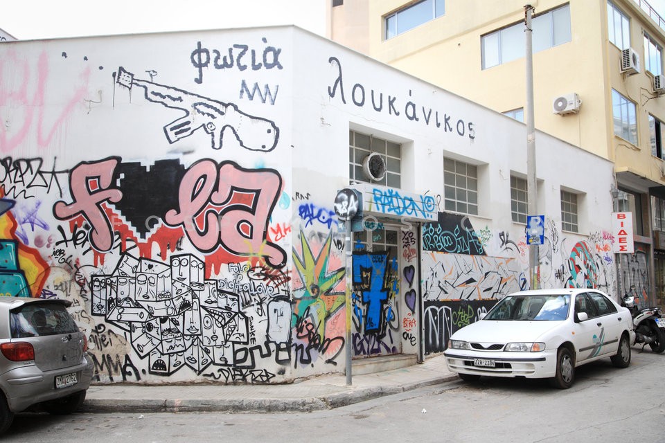 Graffiti on building in Psiri area, cent…