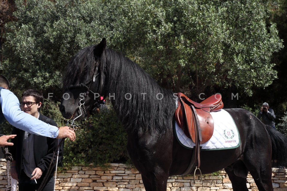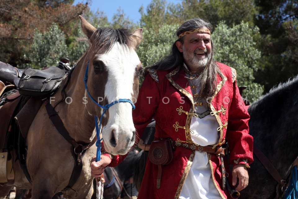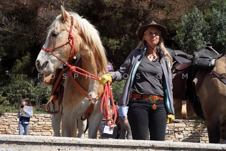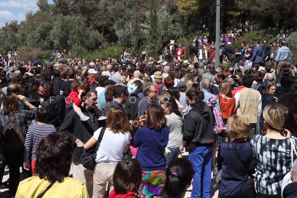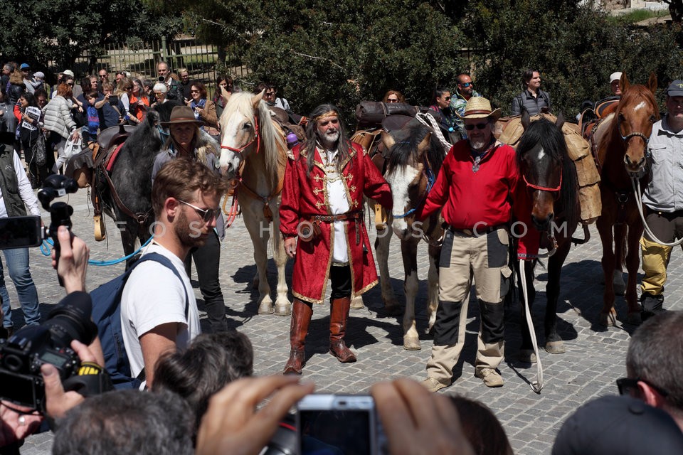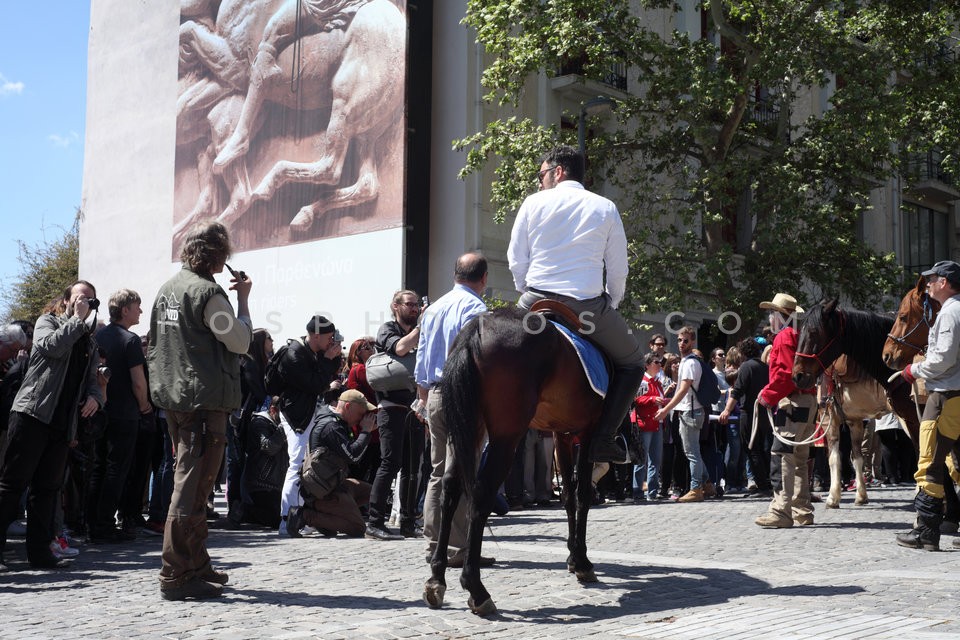 11 horses and riders on Dionysiou Areopa…