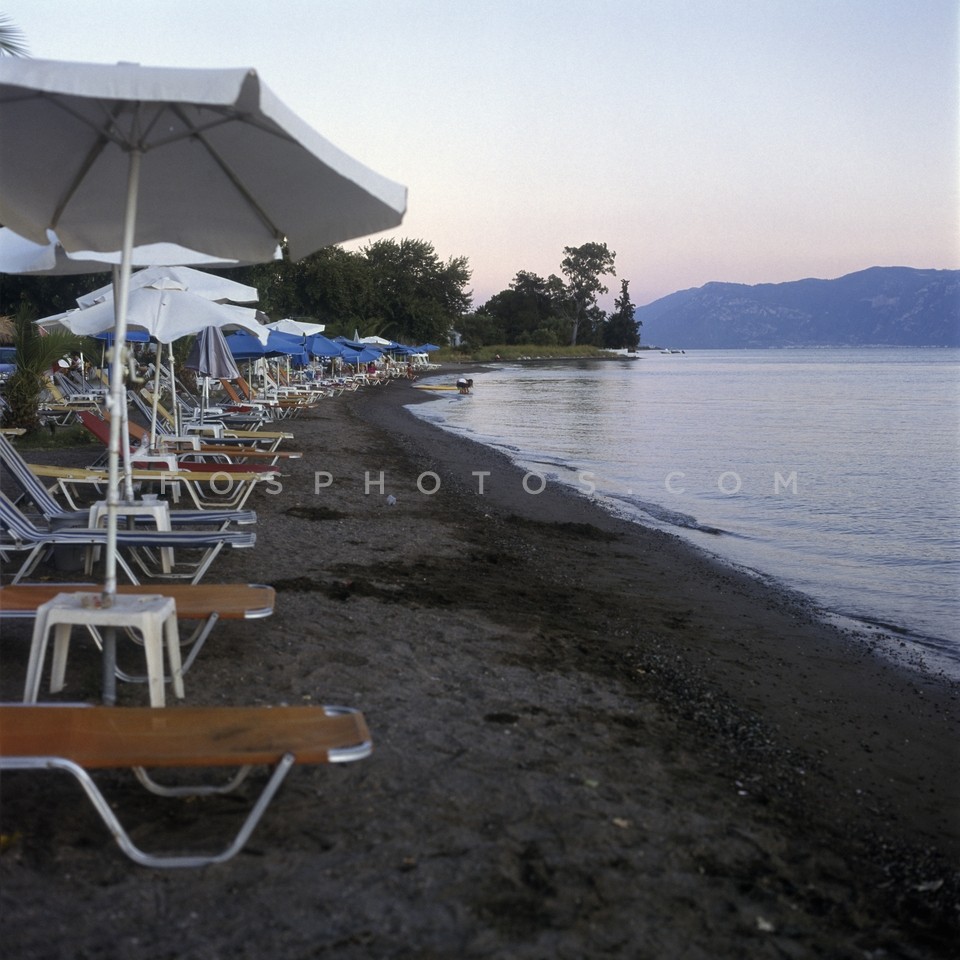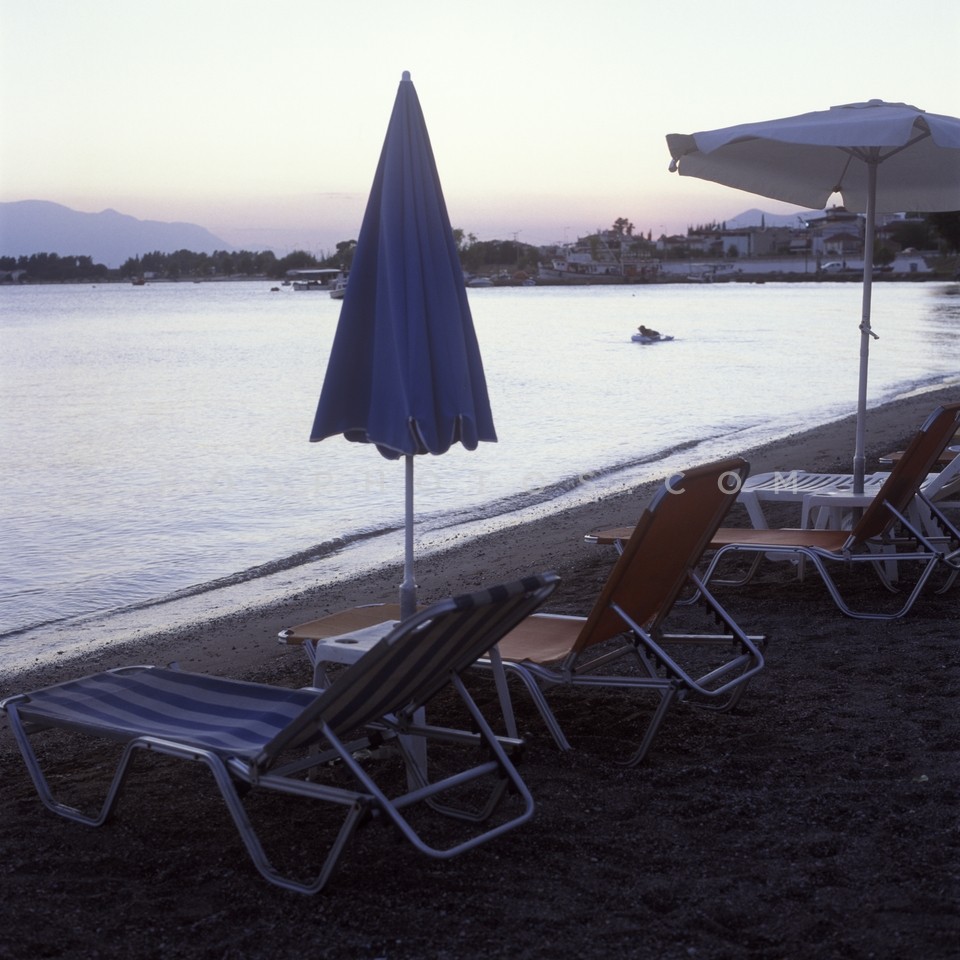 Sunbeds in Karavomilos, Fthiotida, Greece, 2011