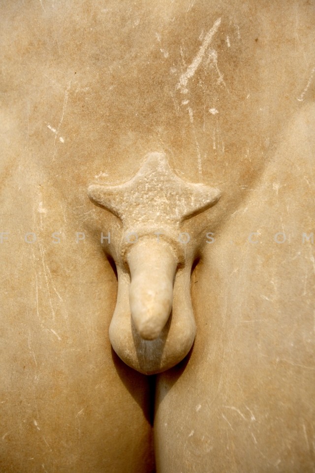 The genitalia of an ancient statue, exhi…