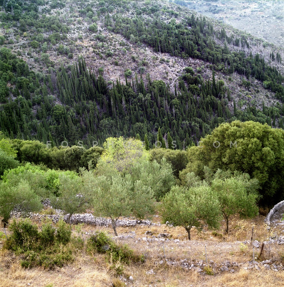 Slope with olive and cypress trees, Isla…