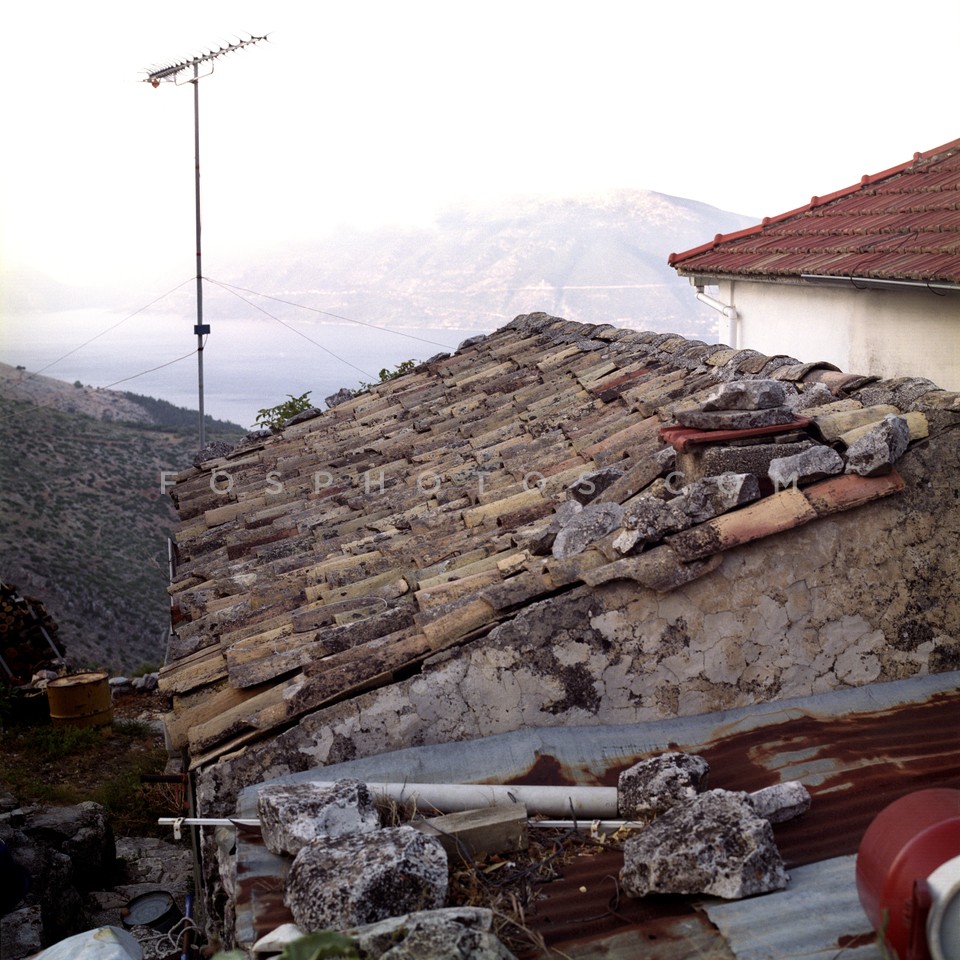 Old tiled rooftop in Neohori village in …