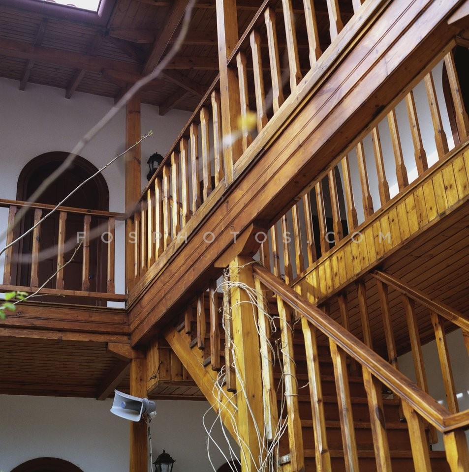 Wooden stairs leading to the cloisters o…