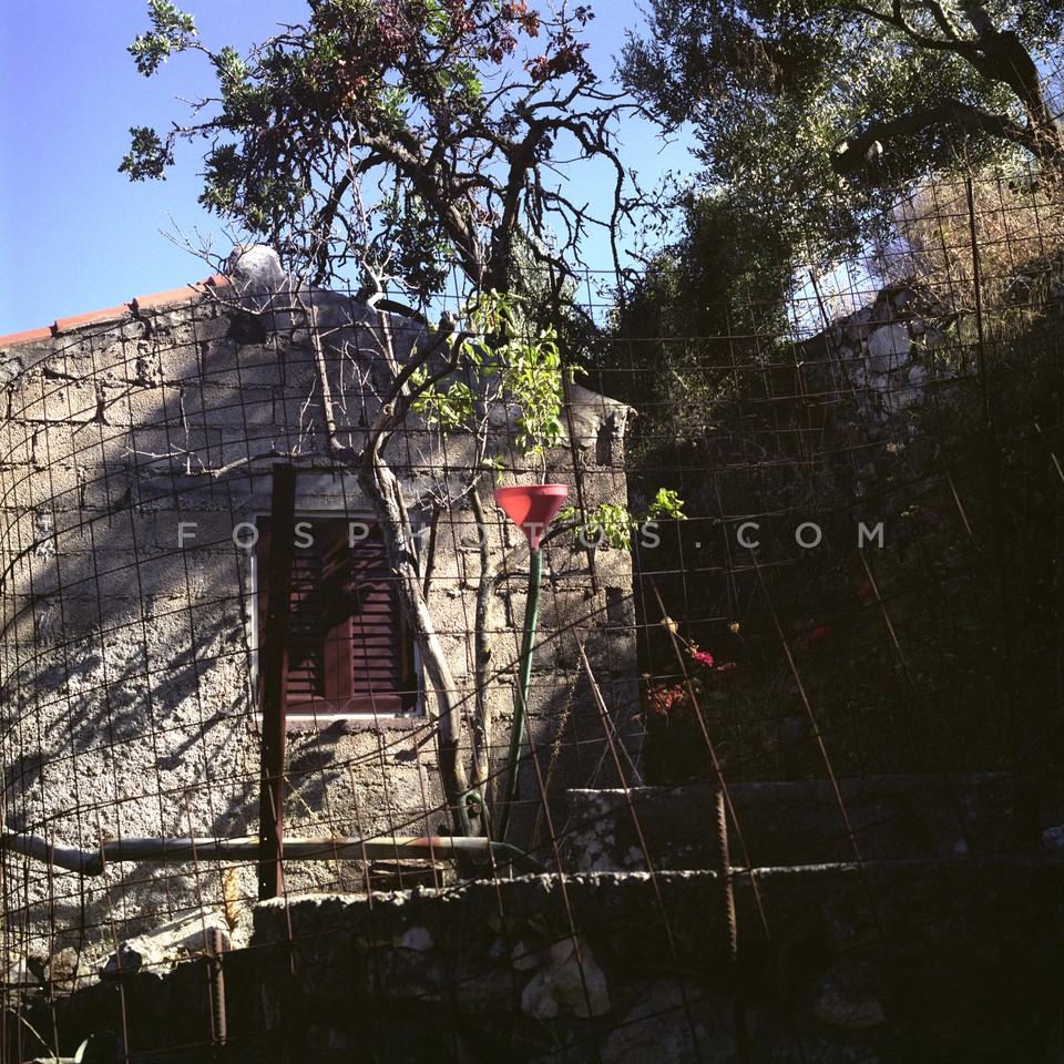 Window of deserted house, bay of Aghia S…