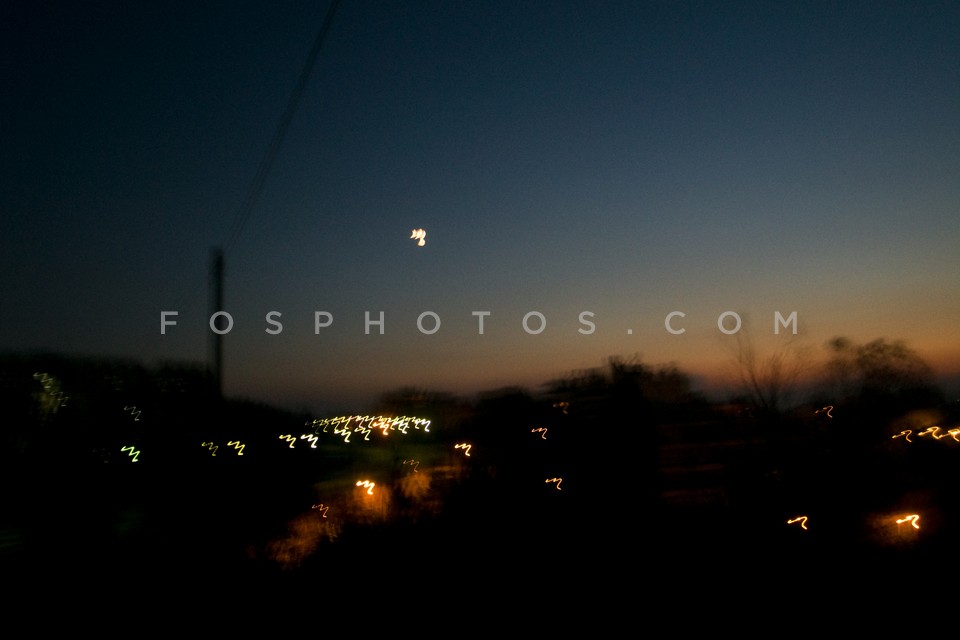Landscape at night with moon, Greece, 2011