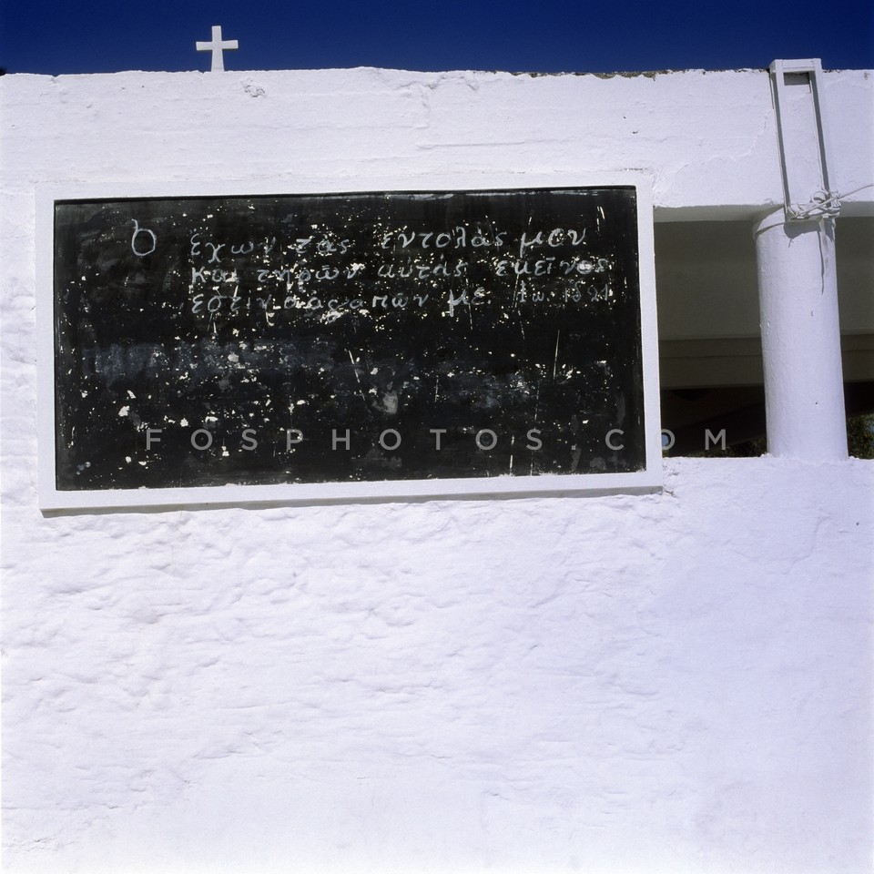 Blackboard on plastered church wall, Kin…