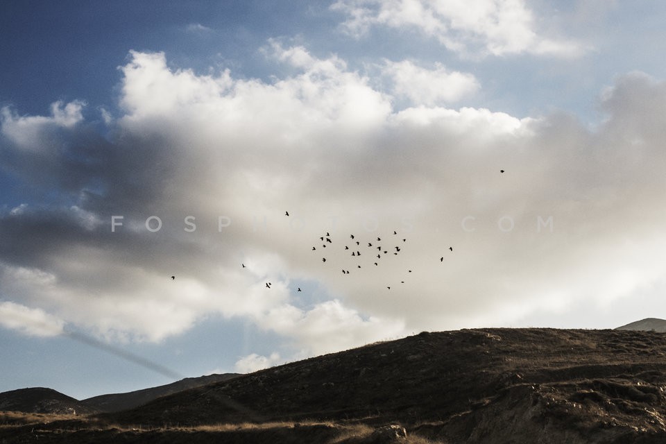 Swarm of birds in the sky, Anafi island,…