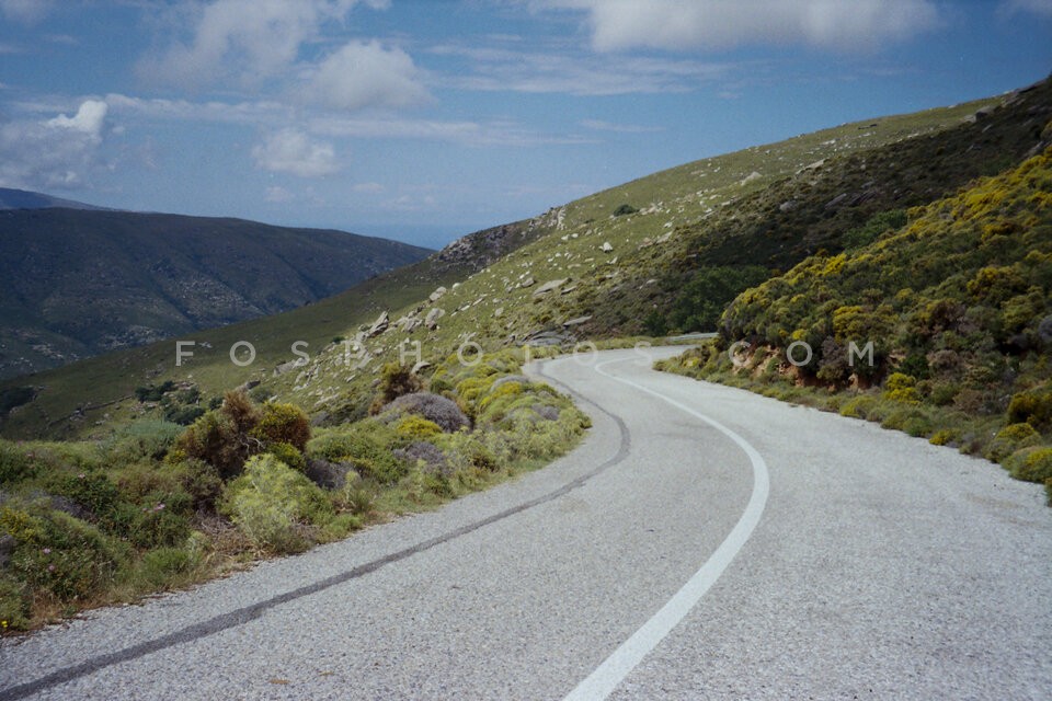 Deserted mountain road in Andros island,…