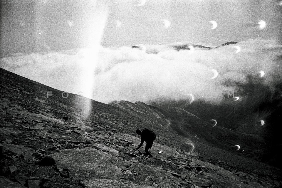 Human figure on the slope of a mountain,…