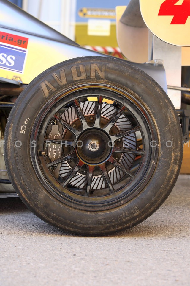 Wheel of a racing car, Athens, Greece, May 2005