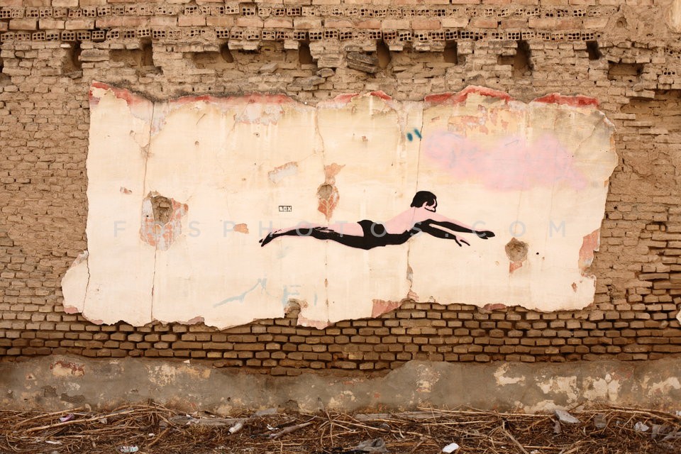Stencil graffiti on ruined wall, Athens,…