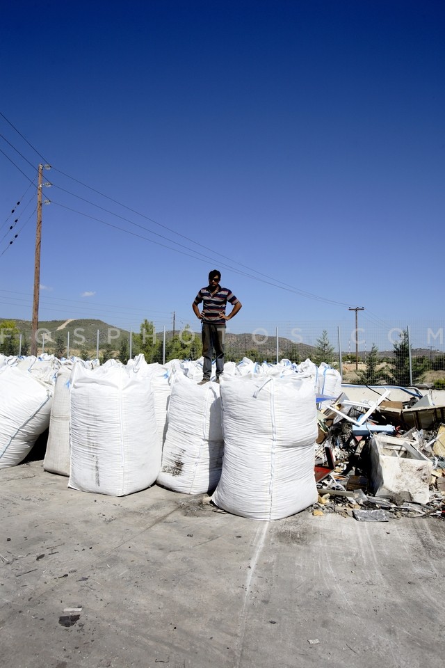 Worker standing on bags at the Hellenic …