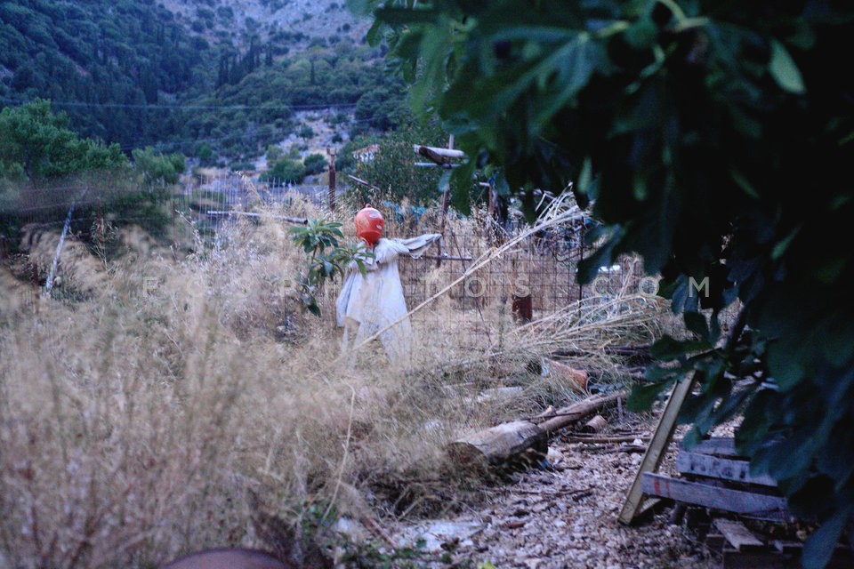 Scarecrow in vineyard, Cephalonia, Ionia…