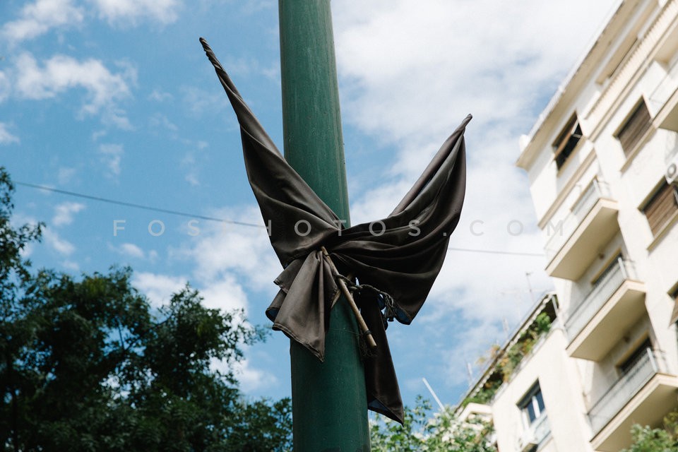 Black flags on a pole, 3rd September str…