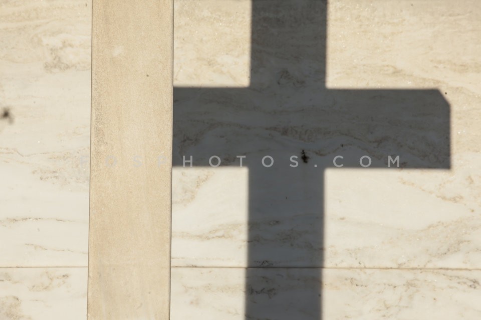 Shadow of a cross on a tomb at the First…
