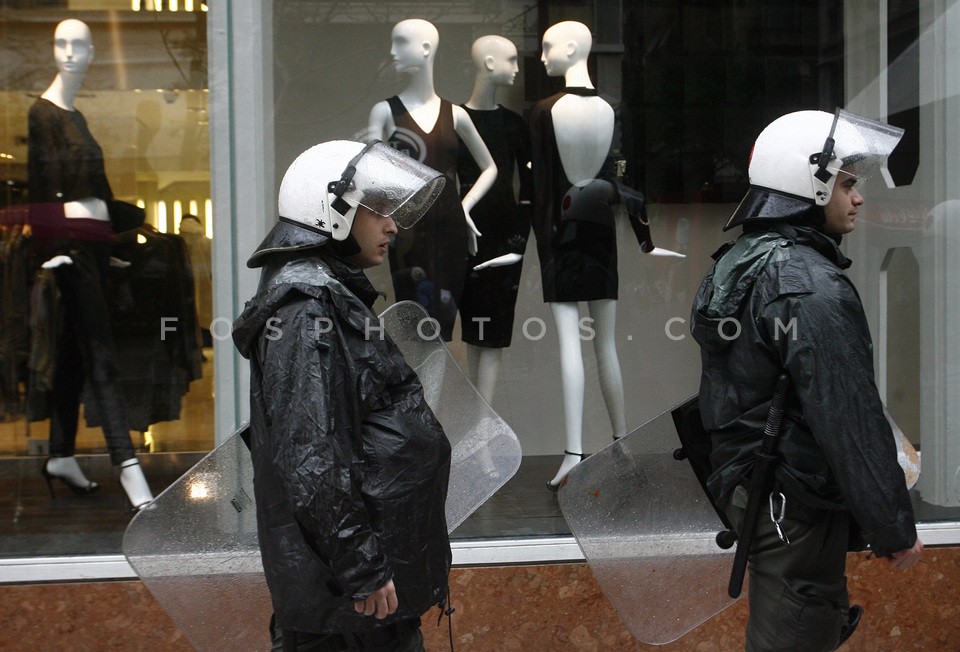 Policemen outside store at central Athen…
