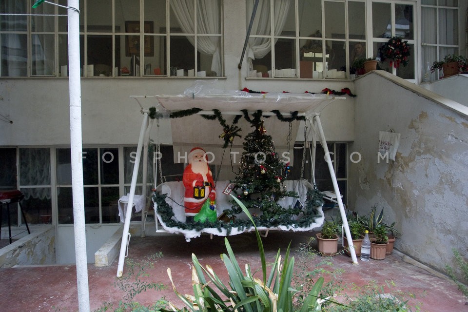 Christmas tree and Santa Claus in a cour…