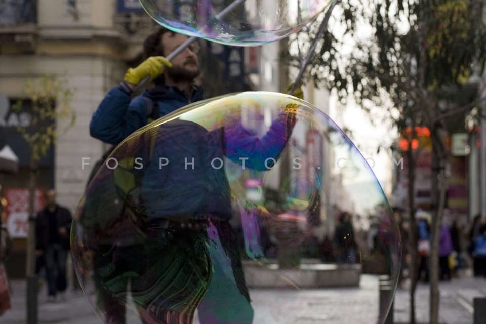 Tomasek makes soap bubbles in a merchant…