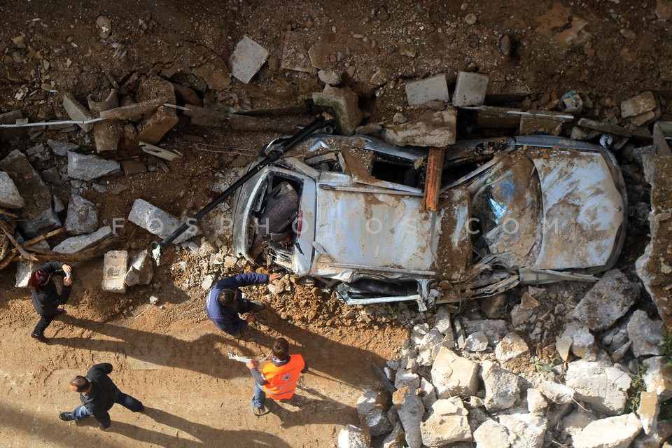 Cars and motorcycles buried after wall c…