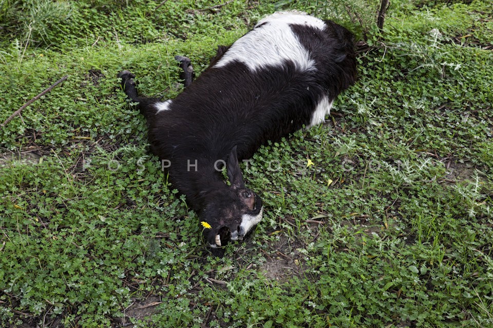 A goat lies dead after a heart attack sh…