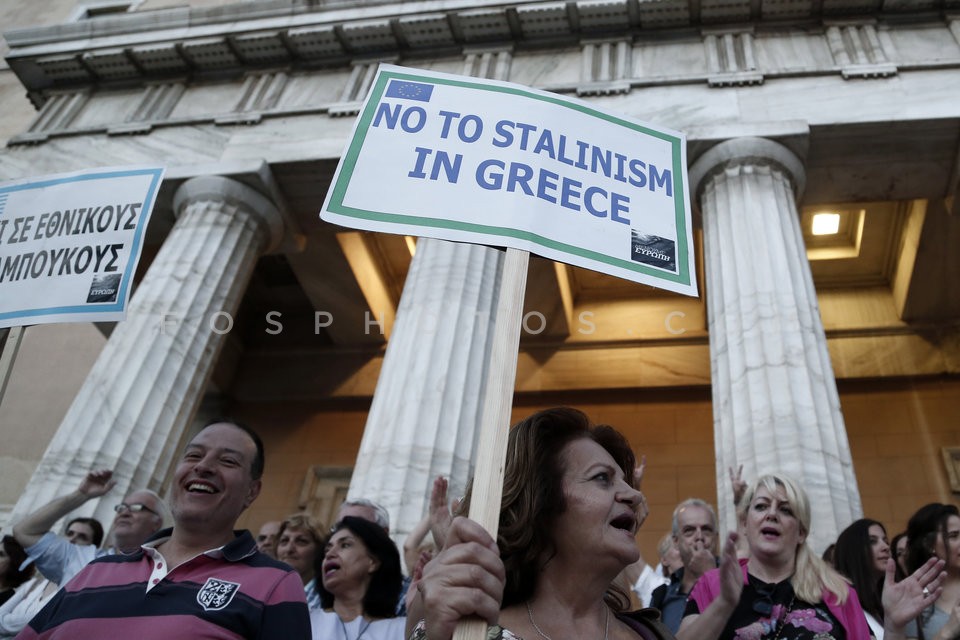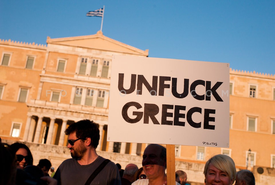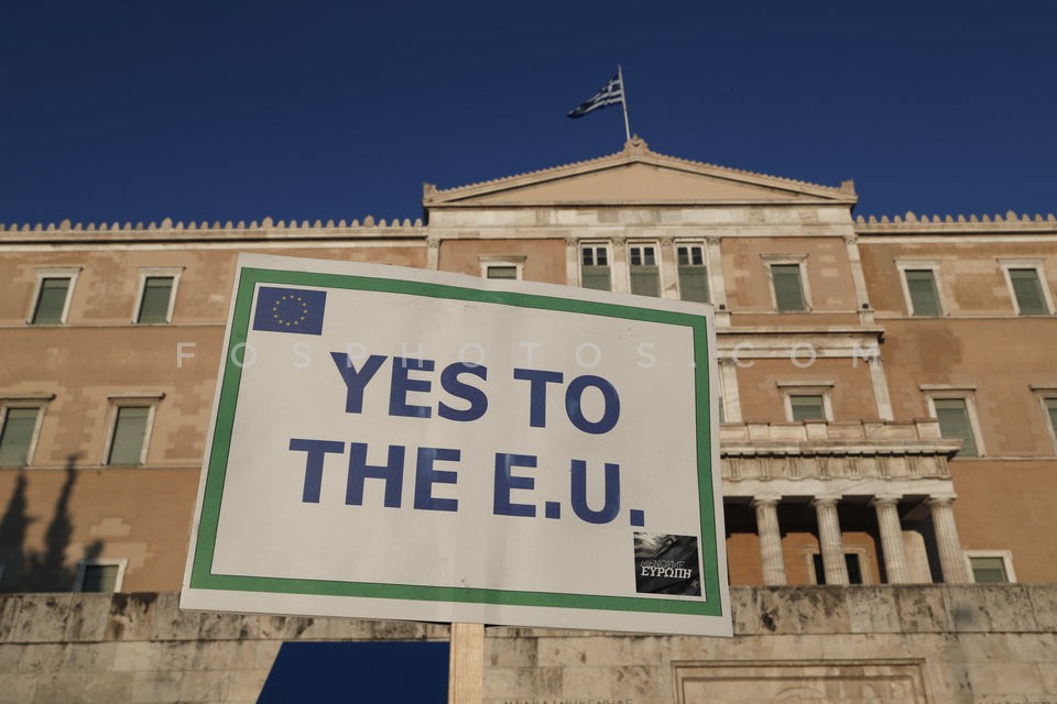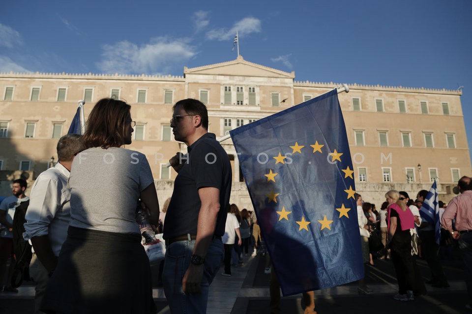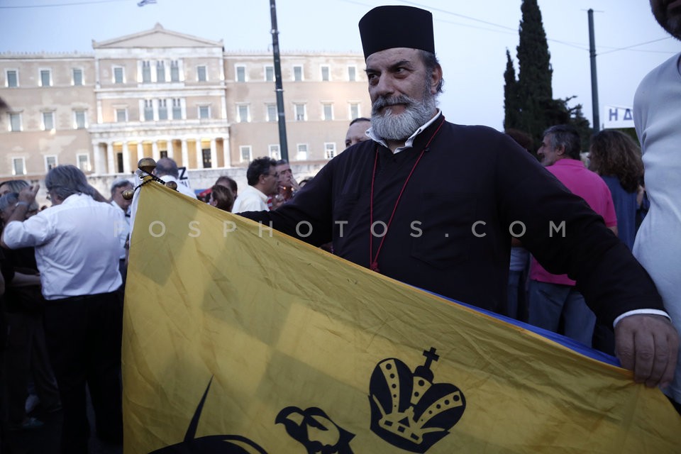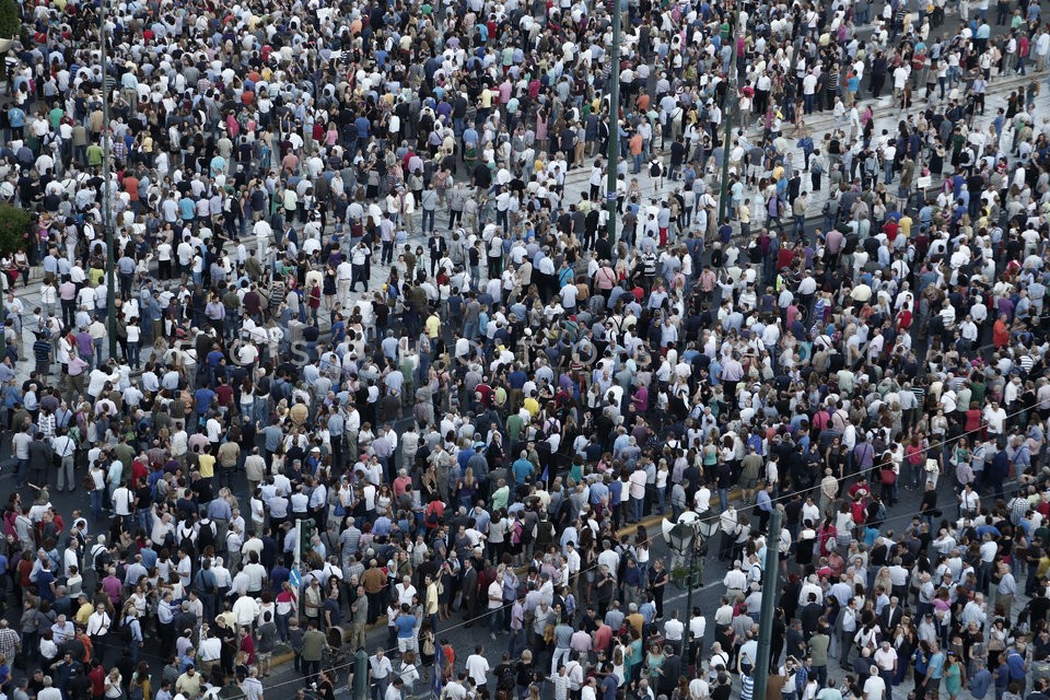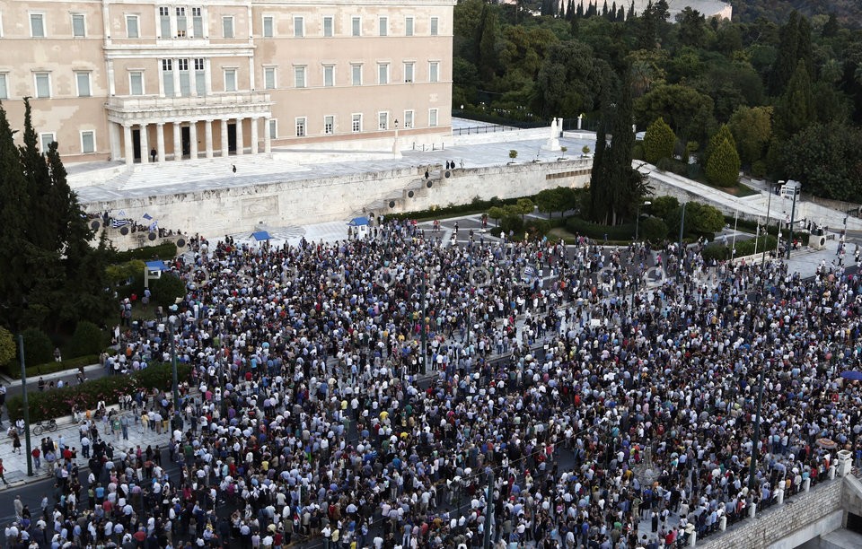 People in front the Greek Parliament dur…