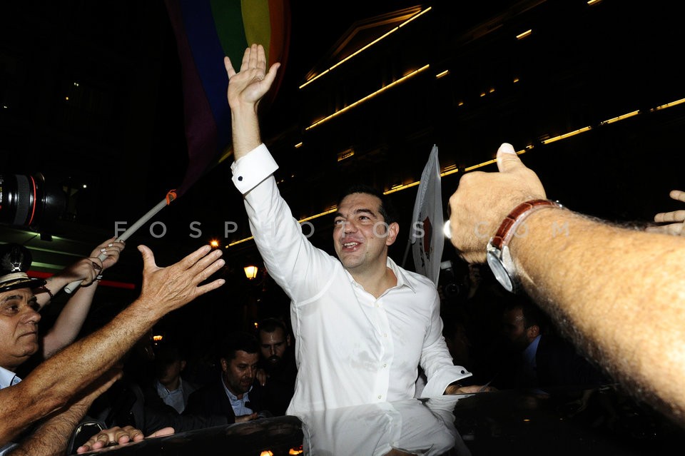 Alexis Tsipras and SYRIZA supporters cel…