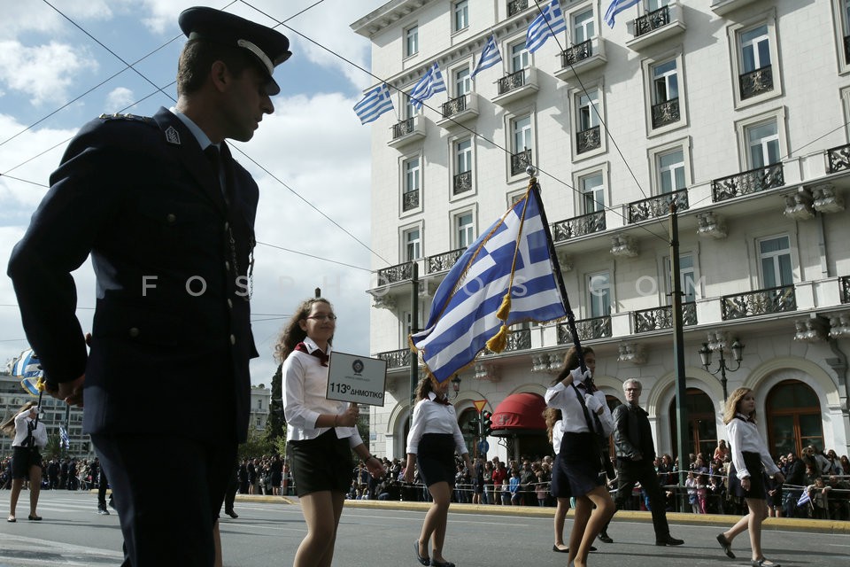 Elementary and high school pupils march …