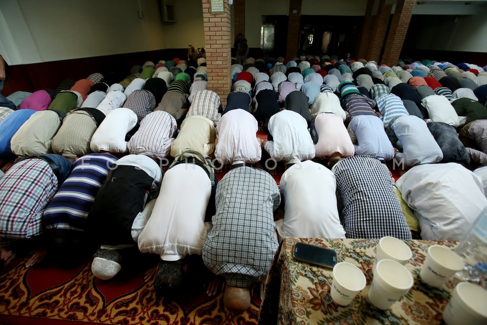 Muslims pray at the Greek- Arabic Cultur…