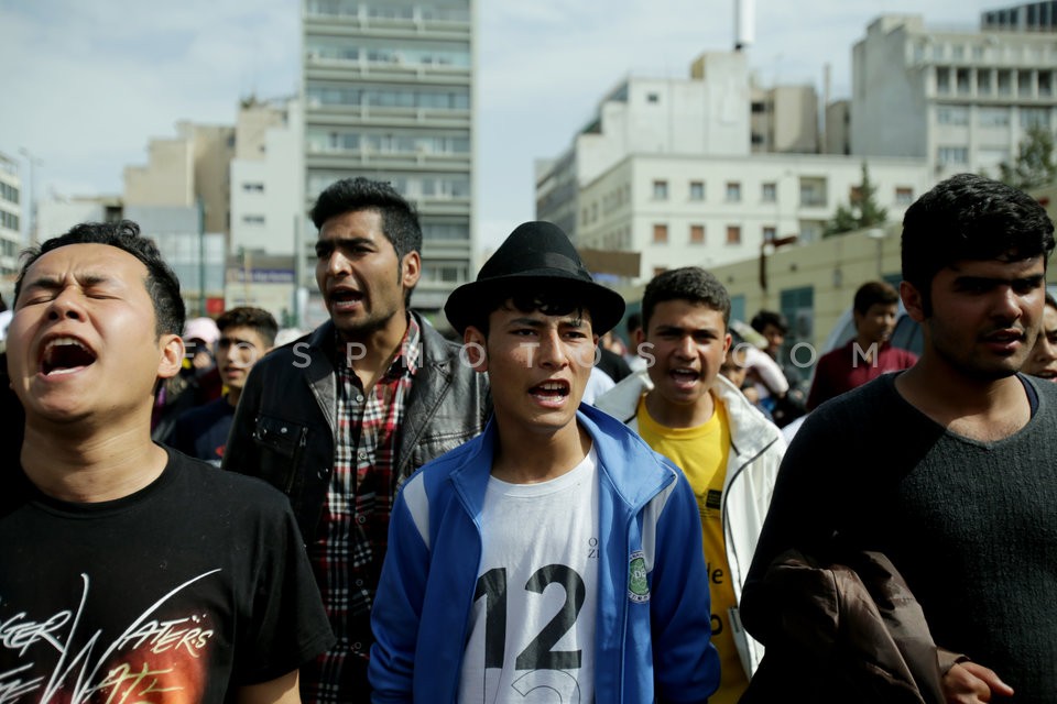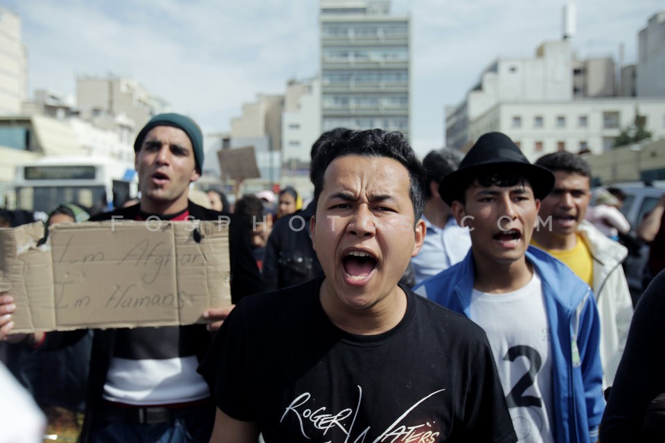 Syrians and Afghans refugees held a prot…