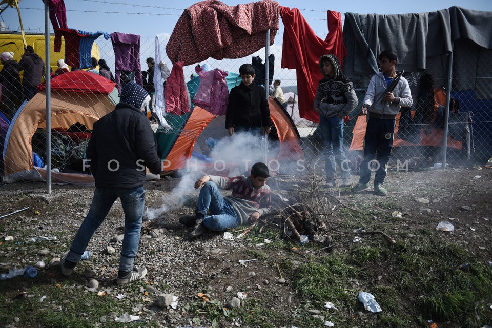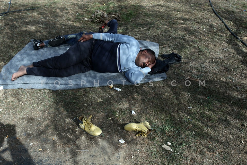 Hundreds of migrants and refugees camp a…