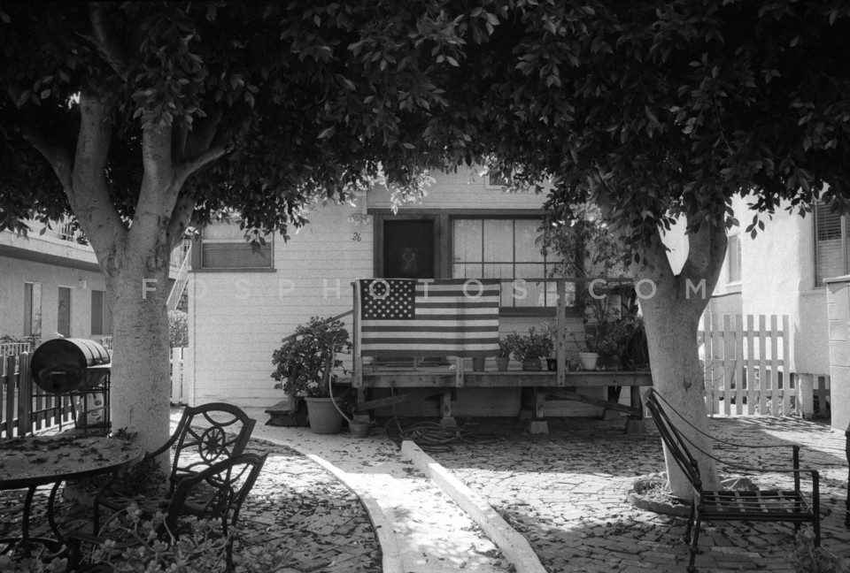 American flag in house yard, California 2003