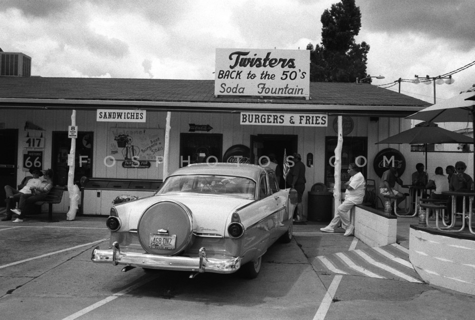 Car from the 50s parked outside a cantee…