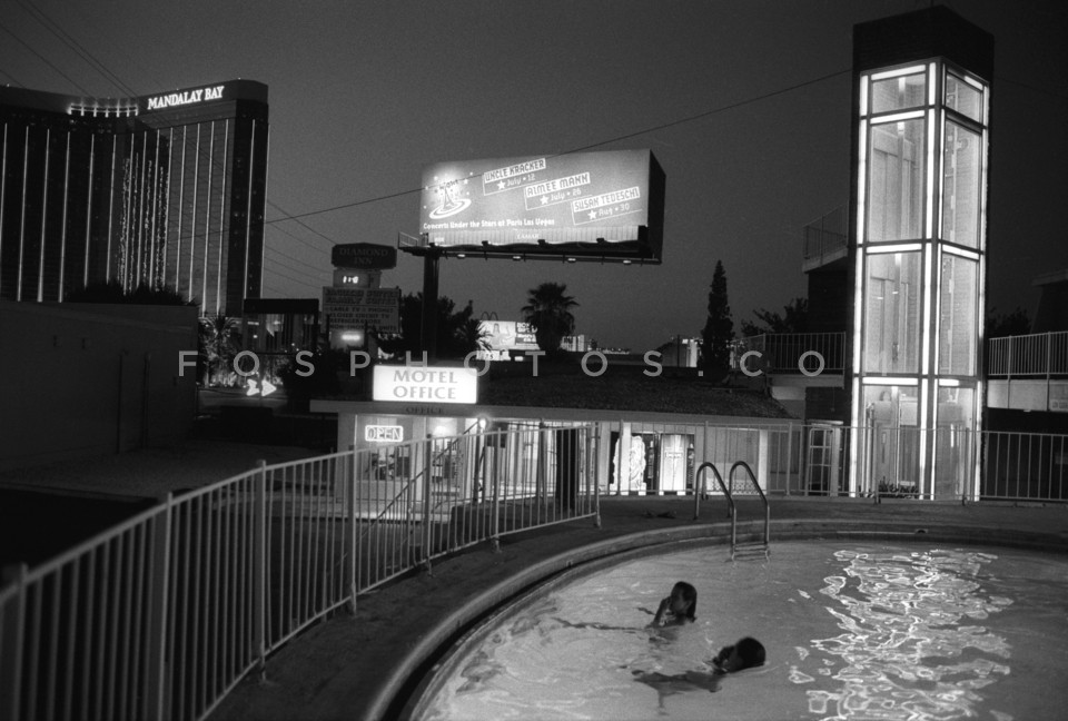 Two women swimming at a motel pool, Las …