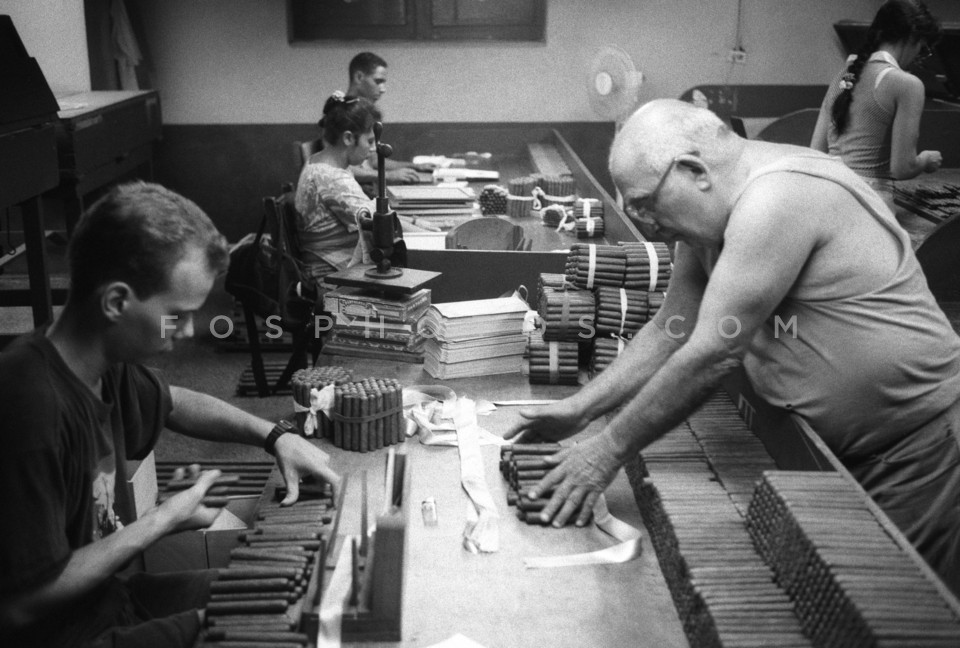 Workers packing cigars in cigar artisans…
