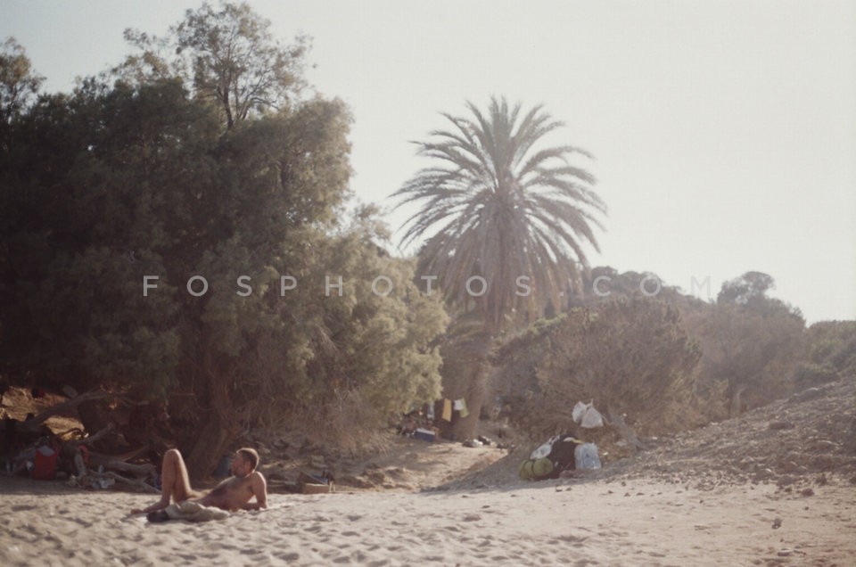 Nudist on a sandy beach, Koufonissia, Cy…